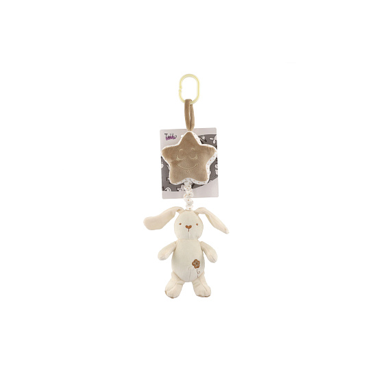 Teddies Zajíc s hvězdou plyš závěs na postýlku/kočárek natahovací hrací strojek 36cm na kartě v sáčku 0+