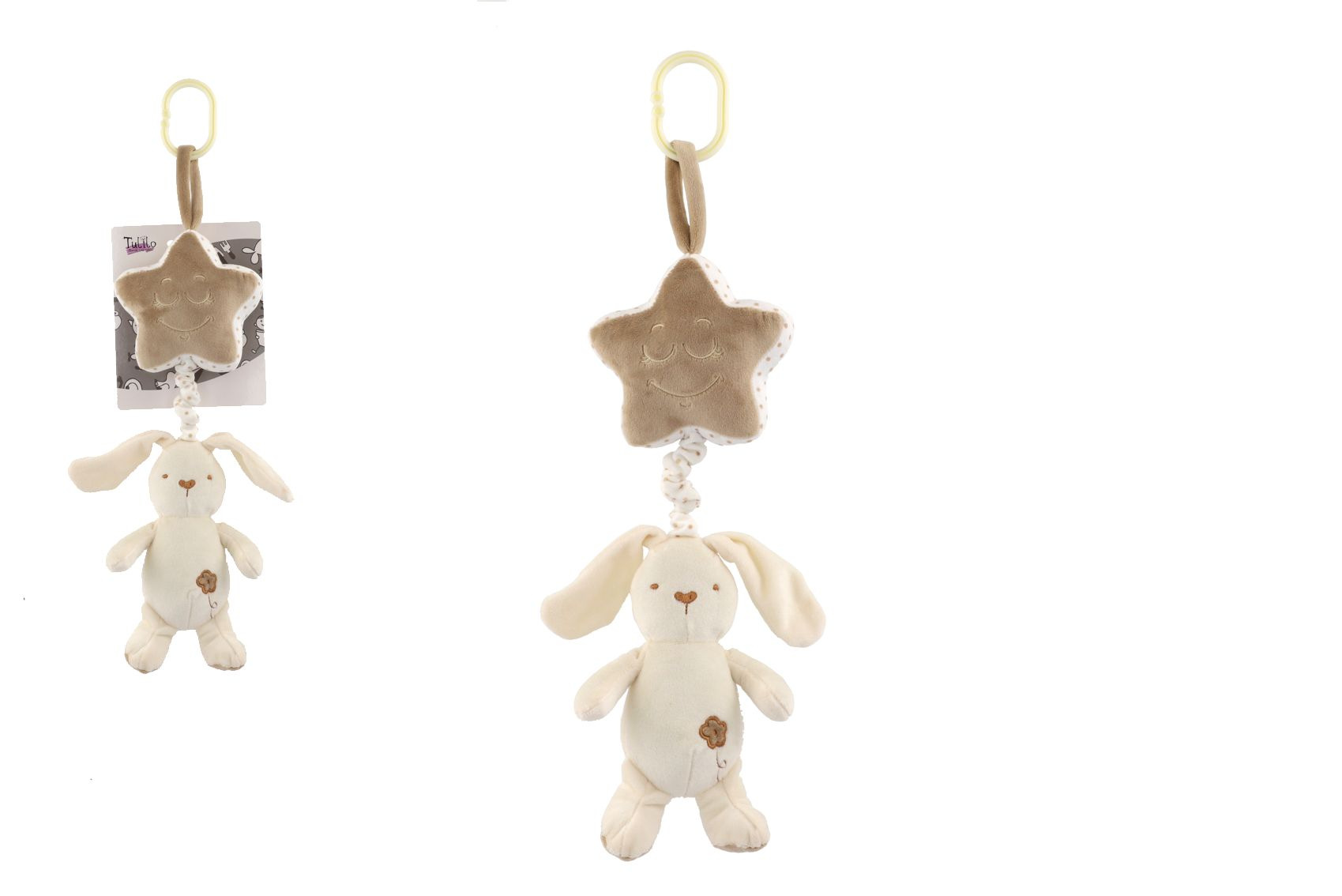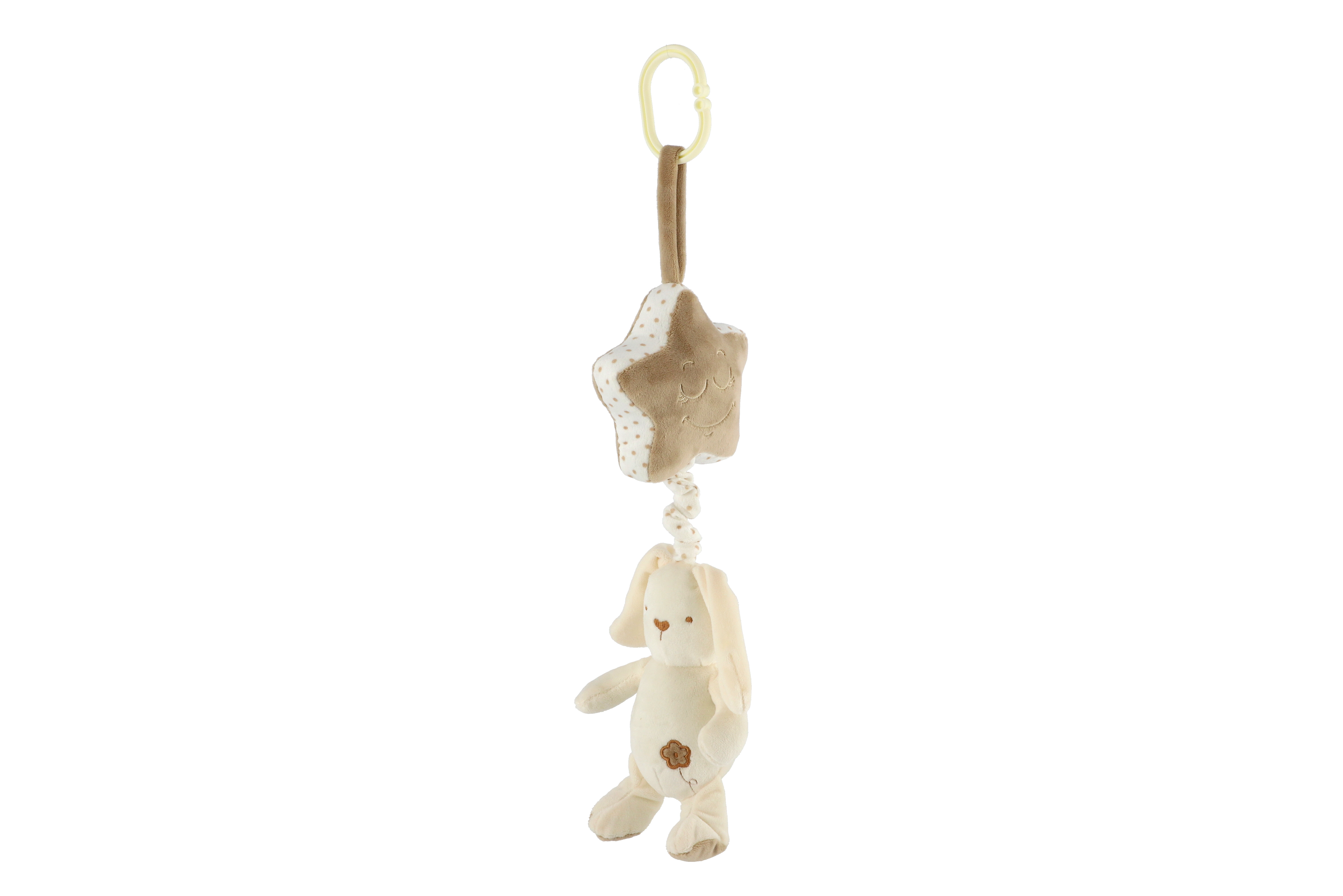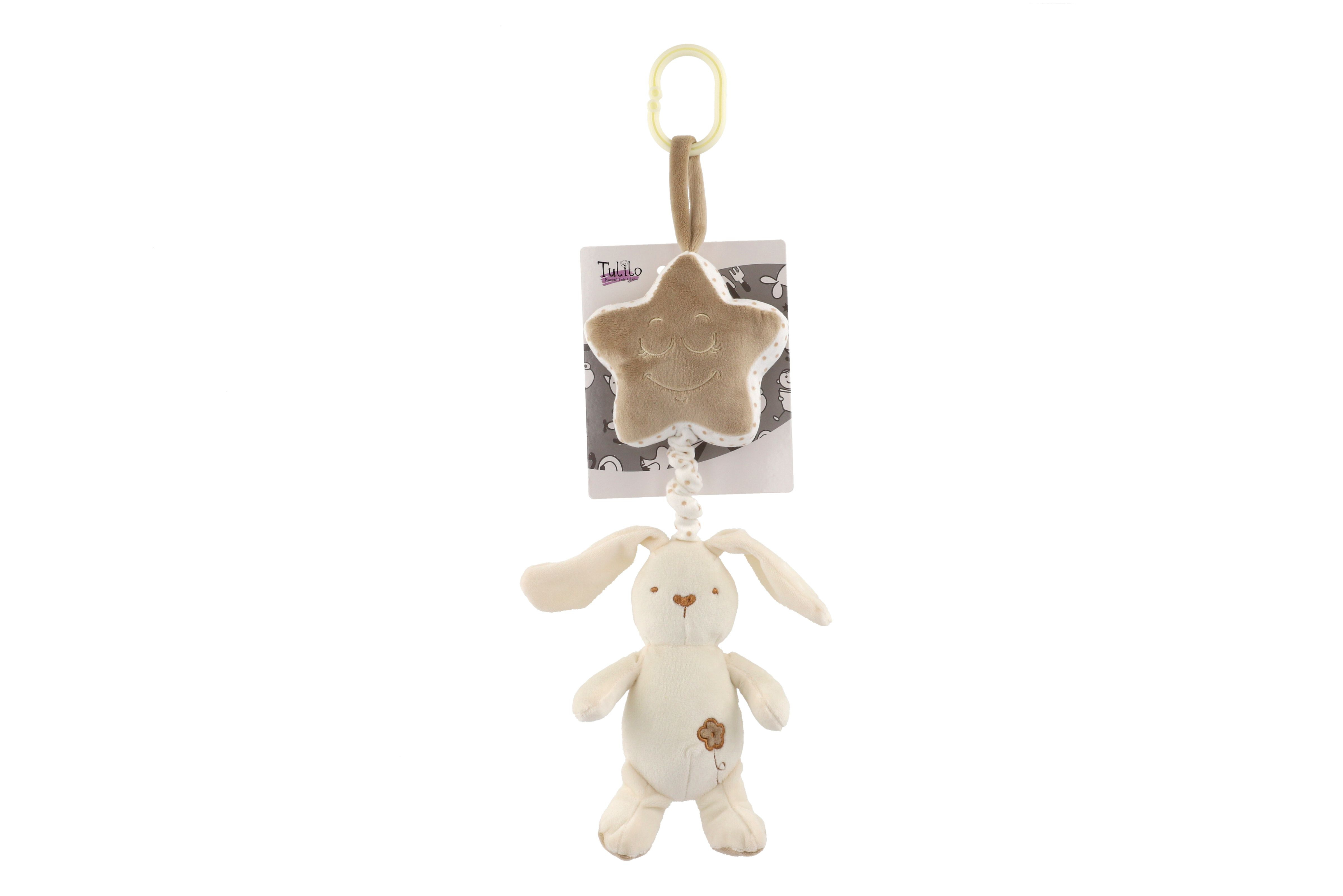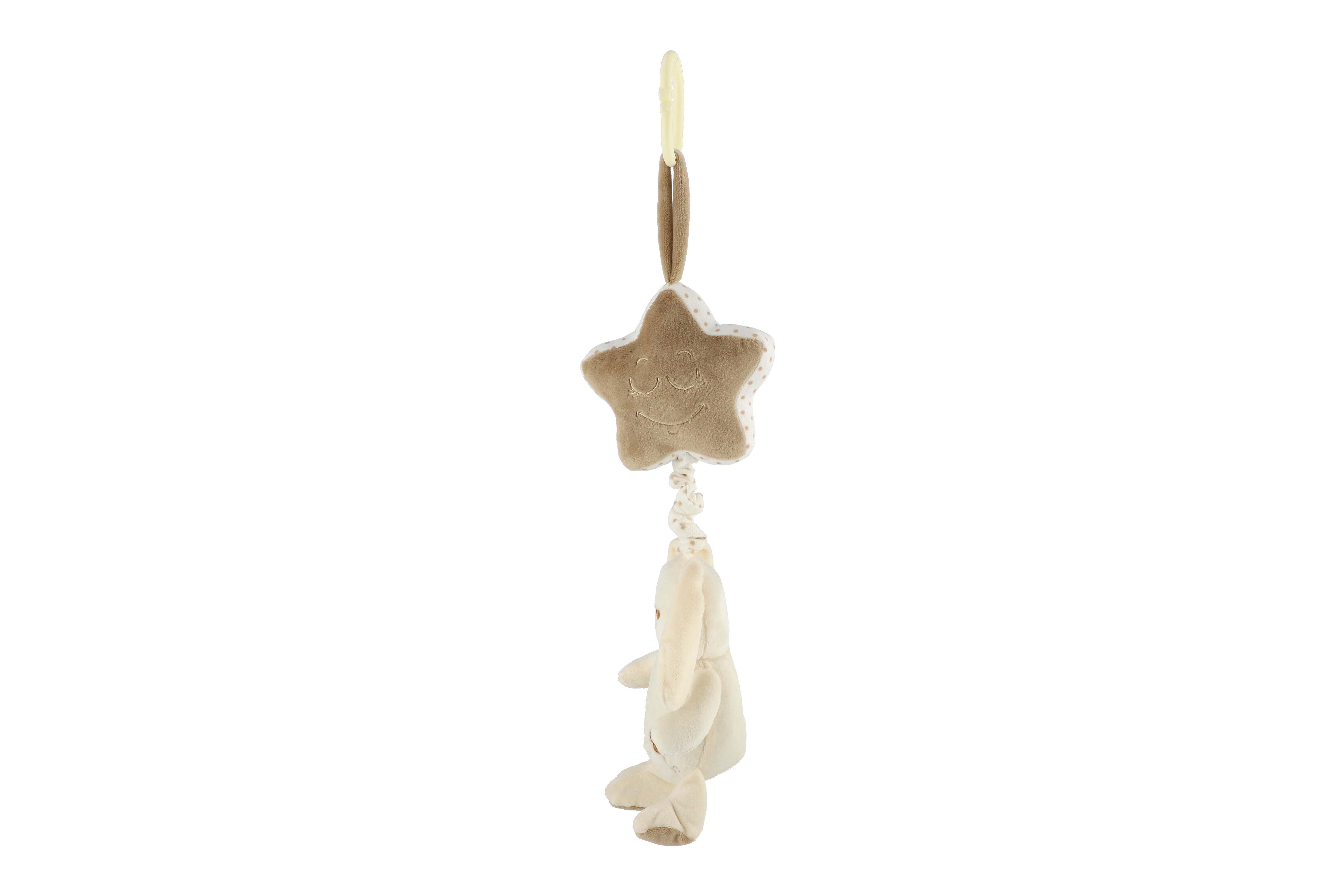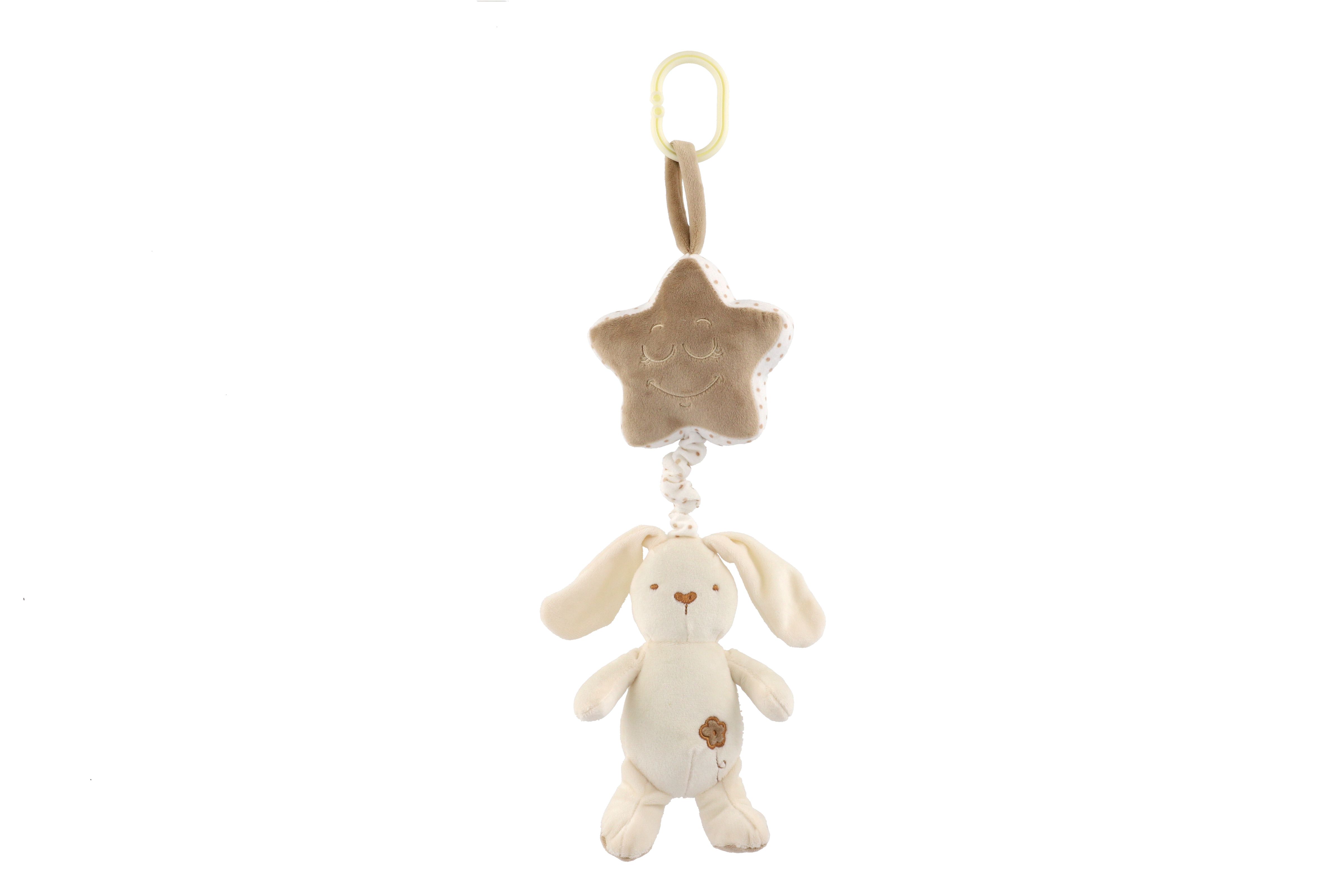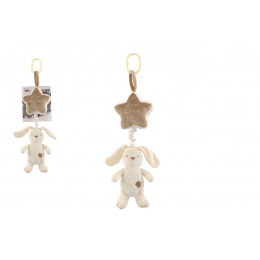 Teddies Zajíc s hvězdou plyš závěs na postýlku/kočárek natahovací hrací strojek 36cm na kartě v sáčku 0+