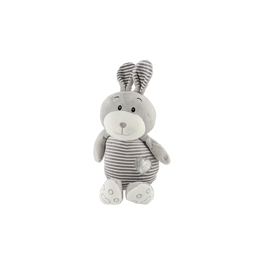 Zajíc/Zajíček sedící pruhovaný plyš 25cm v sáčku 0+