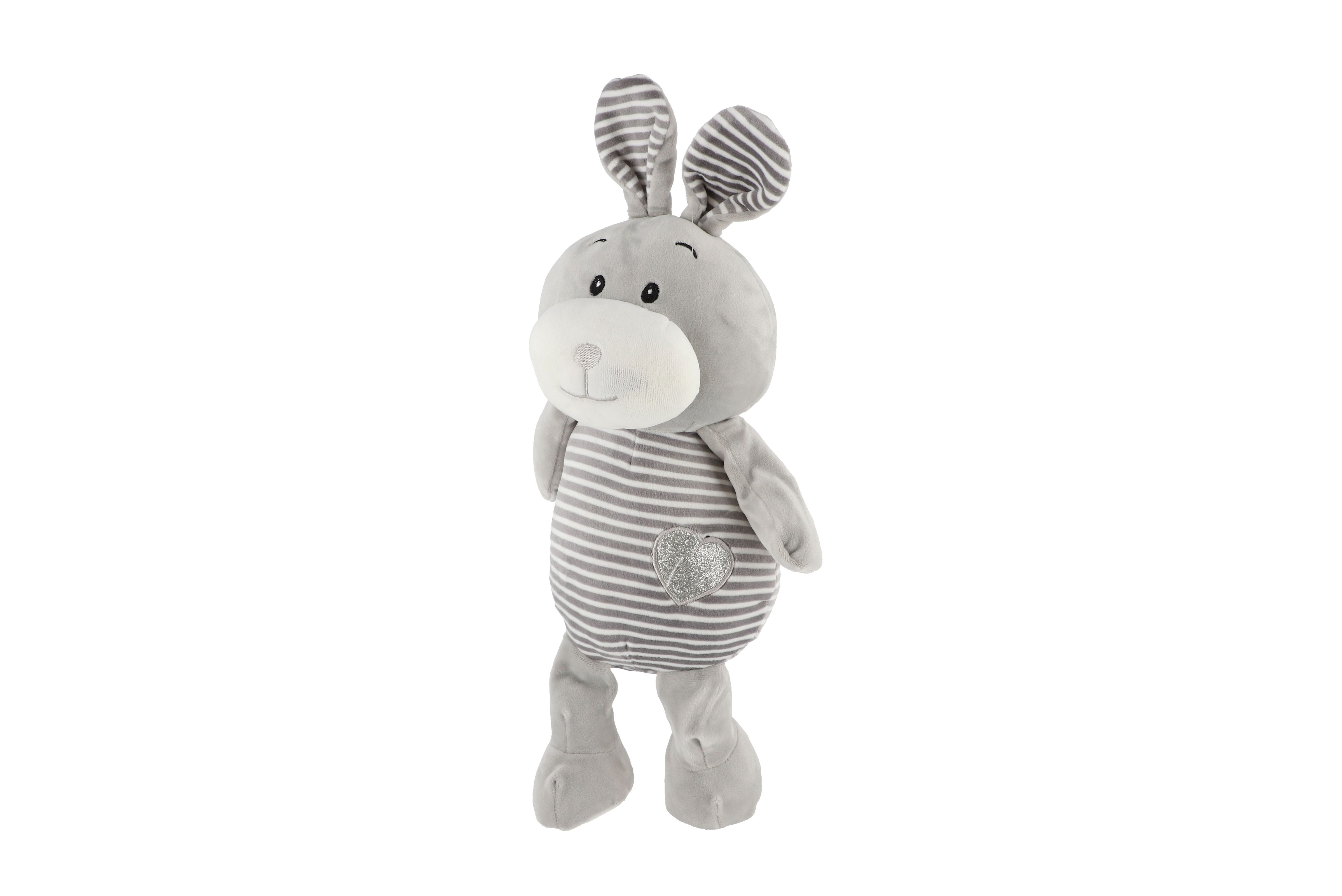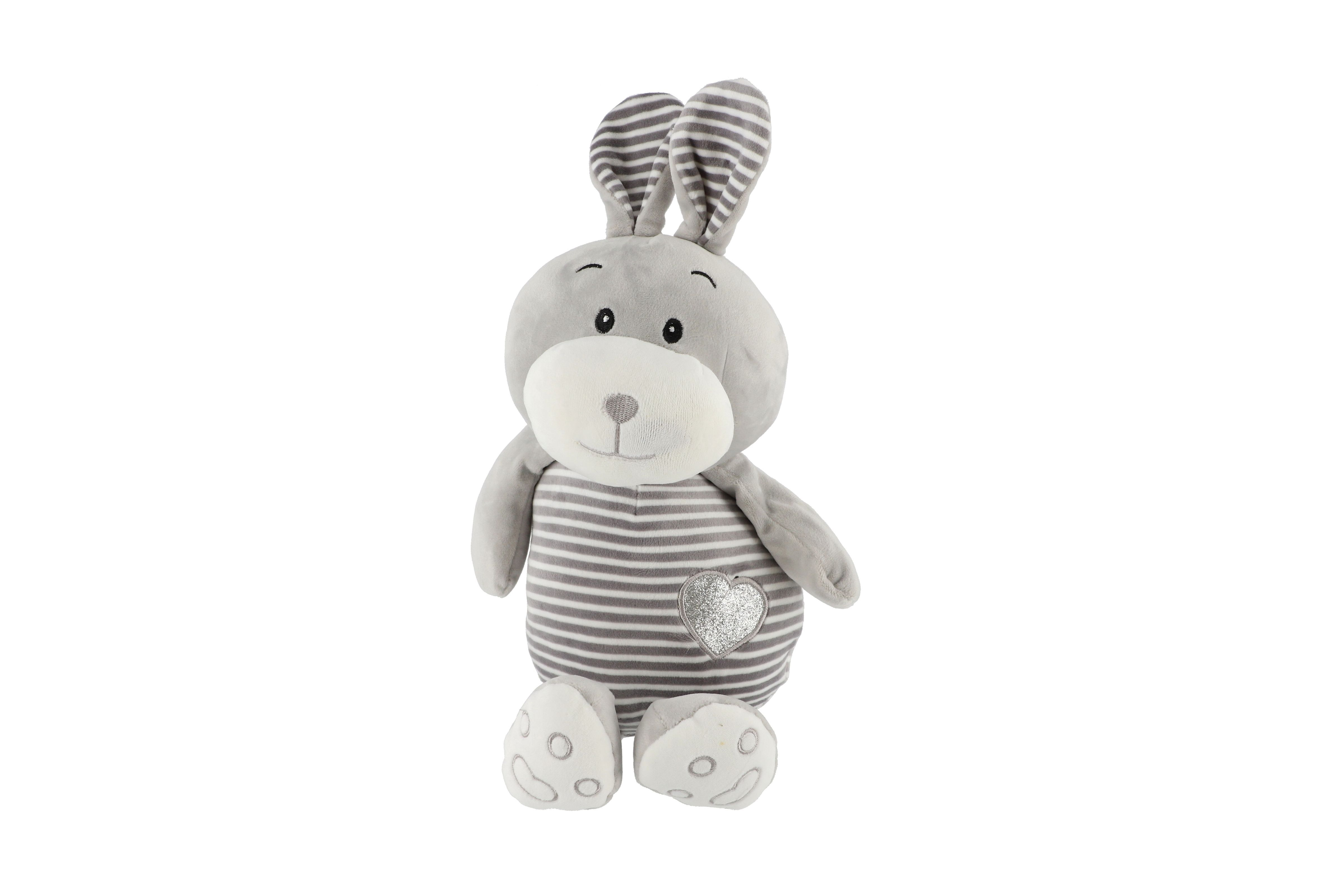 Zajíc/Zajíček sedící pruhovaný plyš 25cm v sáčku 0+
