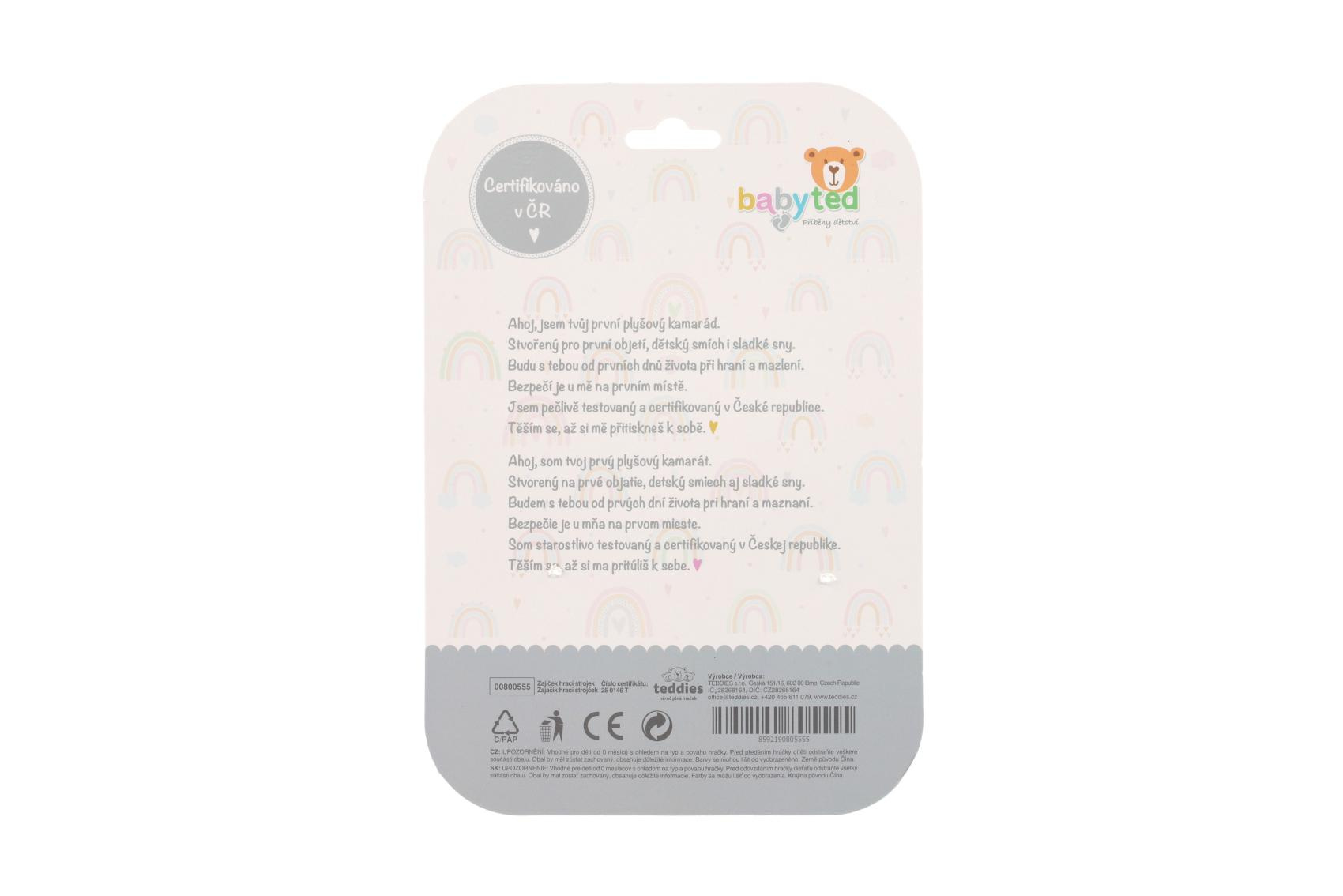 Zajíček babyted natahovací hrací strojek plyš 30cm závěs na postýlku/kočárek na kartě v sáčku 0m+