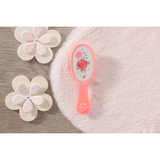 „Sophie, nehýbej se, máš ve vlasech motýla!“ Aha, to je jen motýl na čelence... Sophiiny kvalitní blonďaté vlásky lze upravovat do stále nových účesů a rozčesávat růžovým kartáčem. Malá milovnice růží má ale nejraději volně rozpuštěné vlasy a růžovou čelenku s motýlí ozdobou. Její oblíbené květiny má i na botičkách a šatičkách. Horní díl šatů má světle růžovou barvu a sukně je bílá. Legíny mají stejnou barvu jako dlouhé rukávy.
