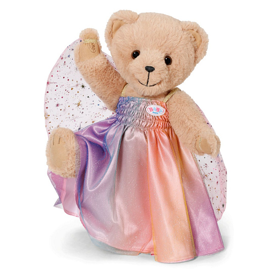 Nápadité duhové šatičky vybízejí ke snění: s našitými křidélky se BABY born vznáší dnem jako víla. Aby mohla mávat křidélky, mají šatičky našitá malá poutka na ruce. Šatičky se třpytí všemi barvami duhy.