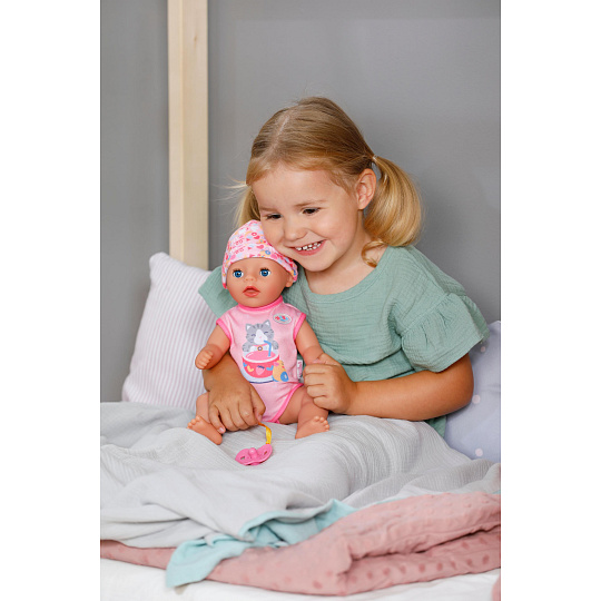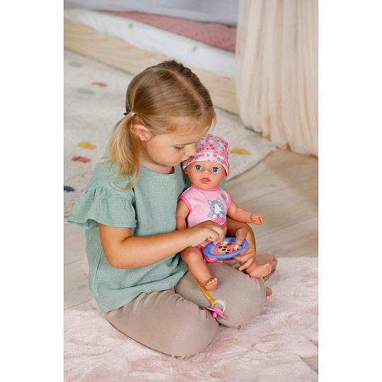 BABY born Lena je ideální první panenka pro děti od 1 roku. Díky své kompaktní velikosti 36 cm a 7 jednoduchým funkcím se snadno drží – perfektní pro malé dětské ruce a první hraní s panenkou.