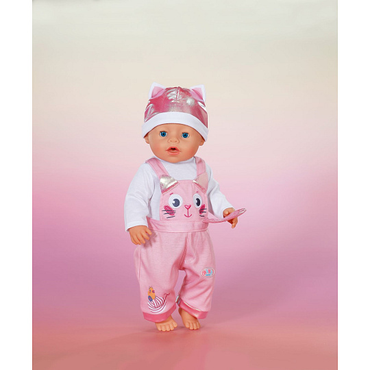 V tomto kočičím overalu s dlouhými rukávy a laclovými kalhotami s potiskem se BABY born promění v malou mazlivou kočičku. Čepička s roztomilýma kočičíma ušima dokonale doplňuje celý outfit. Na nohavici kalhot je potisk, kde si kačenka Berta hraje s klubíčkem vlny. Chce se kočička Cookie připojit k zábavě?