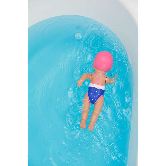 BABY born Lizzie je ideální společník pro malé vodní nadšence a ty, kdo se jimi teprve stanou. Tato pečlivě navržená plovoucí panenka může být brána do vody a sama plave pohyby kraula a motýlka – zcela bez baterií. Stačí natáhnout její ruce a už šťastně plave ve vodě. Hravou formou tak dětem dodává jistotu a jemně jim pomáhá překonat strach z vody. Perfektní pro koupání a první pozitivní zkušenosti s vodou – ať už doma ve vaně, v bazénu nebo u jezera.