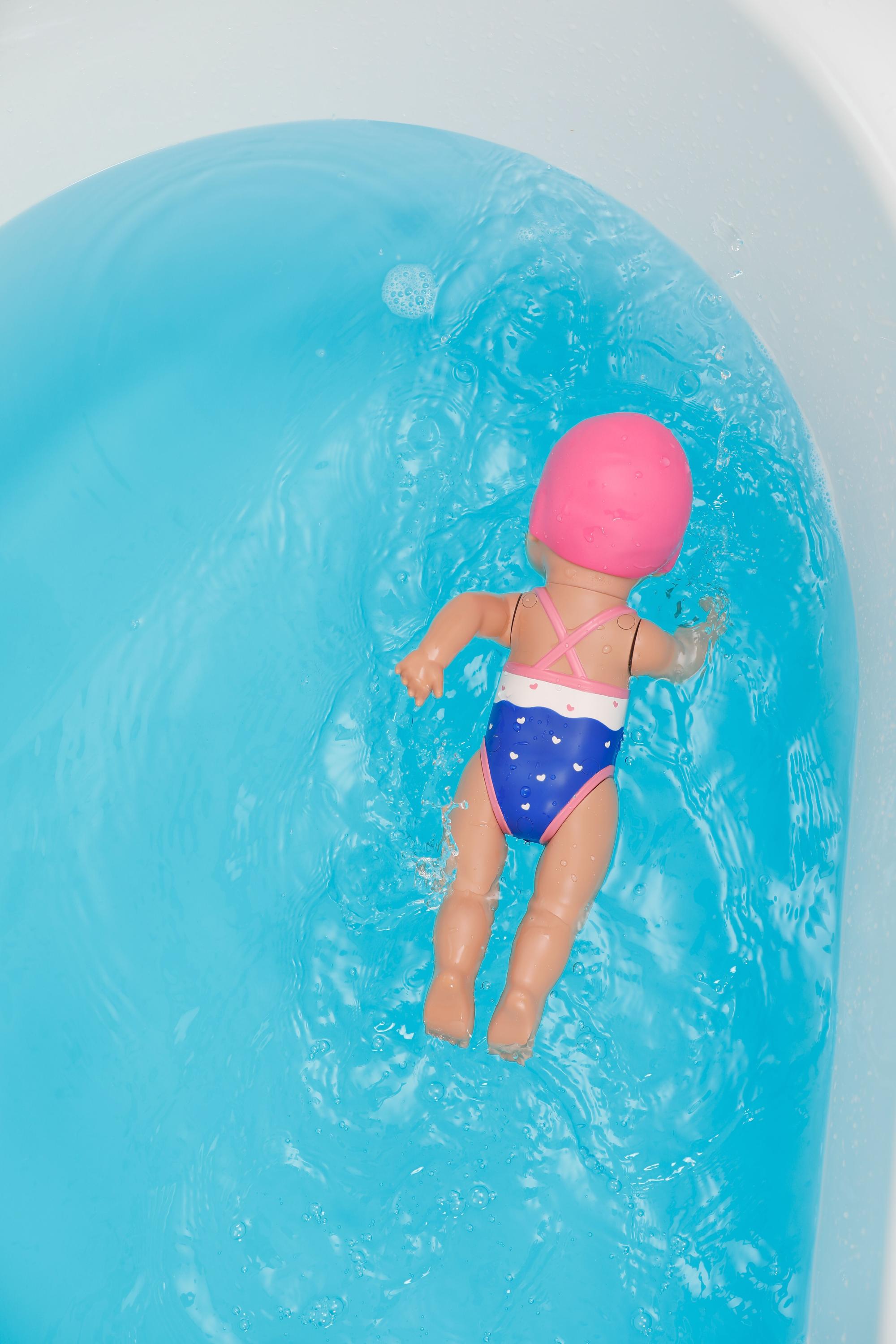 BABY born Lizzie je ideální společník pro malé vodní nadšence a ty, kdo se jimi teprve stanou. Tato pečlivě navržená plovoucí panenka může být brána do vody a sama plave pohyby kraula a motýlka – zcela bez baterií. Stačí natáhnout její ruce a už šťastně plave ve vodě. Hravou formou tak dětem dodává jistotu a jemně jim pomáhá překonat strach z vody. Perfektní pro koupání a první pozitivní zkušenosti s vodou – ať už doma ve vaně, v bazénu nebo u jezera.