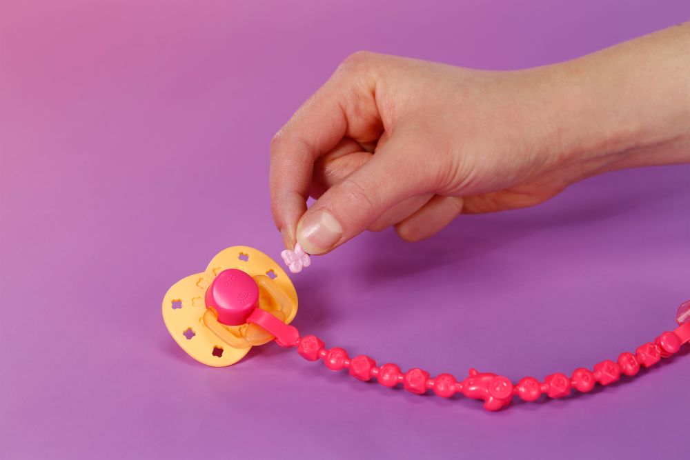• Přizpůsobitelné: Dudlík lze dozdobit nacvakávacími ozdobami (nejsou součástí balení)