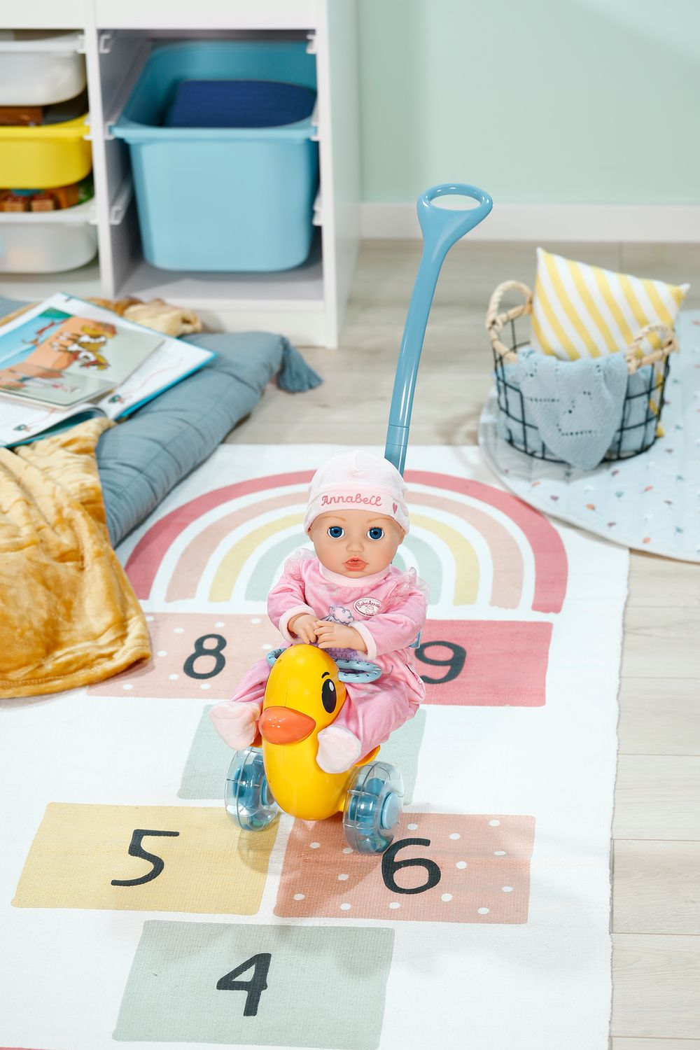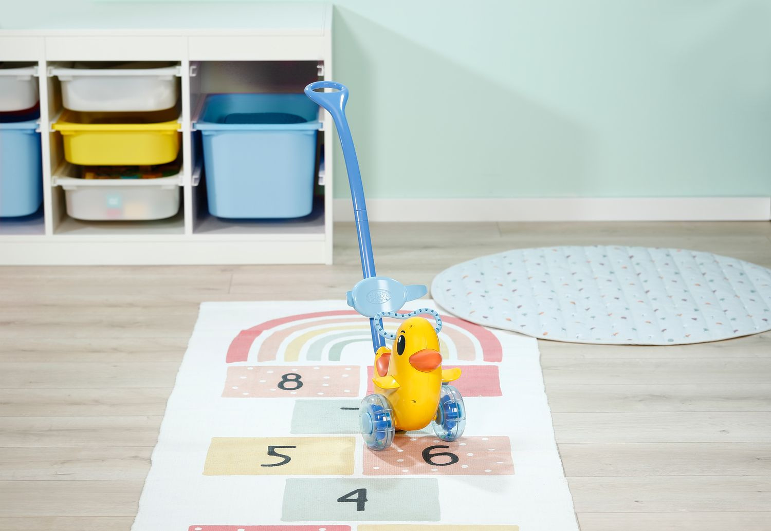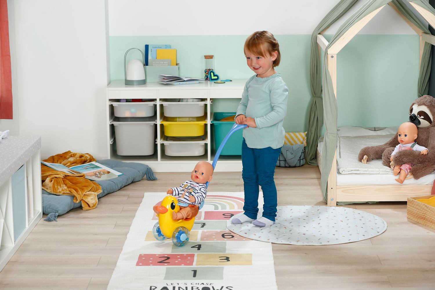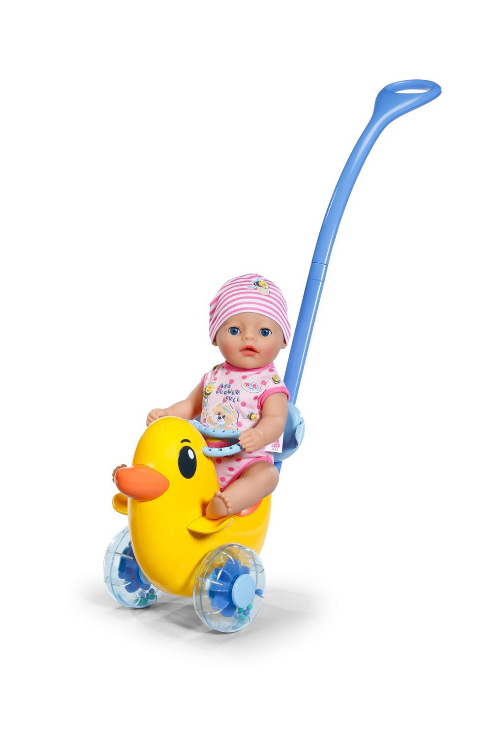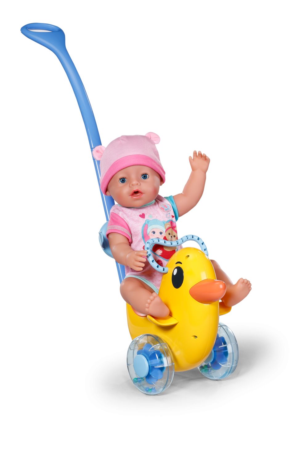Berta je tu! Nejenže se projíždí v animovaném seriálu BABY born, ale teď dorazila i do dětského pokojíčku. Stejně jako na horské dráze může být panenka v sedátku připnuta sklopným madlem. Díky nastavitelnému opěrátku mají všechny panenky BABY born na sedátku bezpečnou oporu. Pod sedátkem se skrývá malá tajná přihrádka. Berta může být tlačena ručně po zemi nebo pomocí odnímatelné a výškově nastavitelné vodící tyče. Chrastící kolečka přidávají další herní prvek, který při projížďkách s Bertou zajišťuje ještě více zábavy – jak uvnitř, tak venku. Emma, Lena a Teddy tak mohou být vyvezeni i mimo dětský pokojíček. Tak vzhůru nasedat a jedeme!