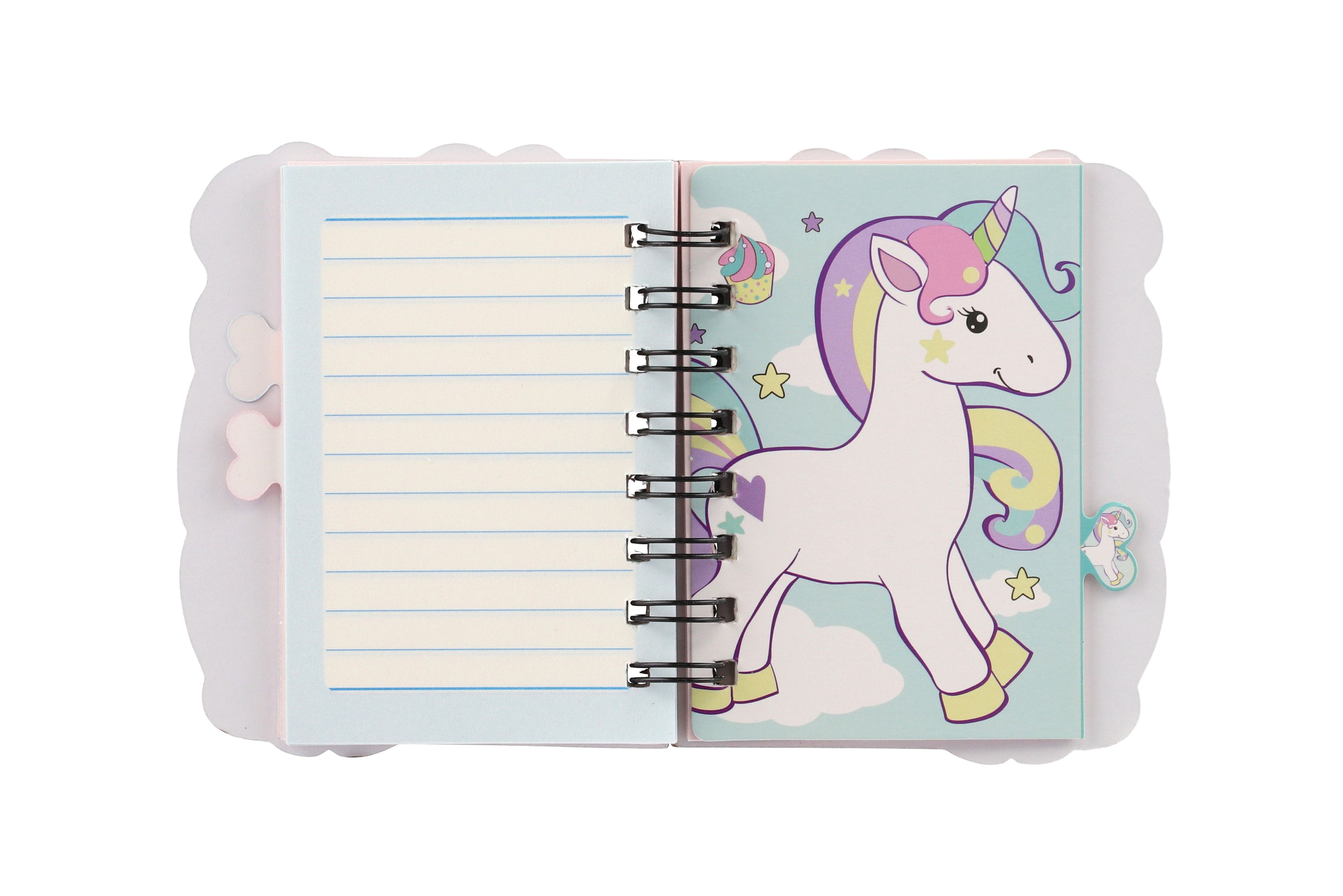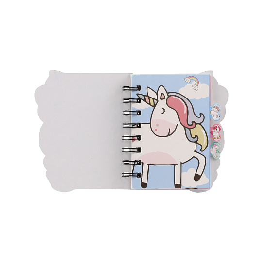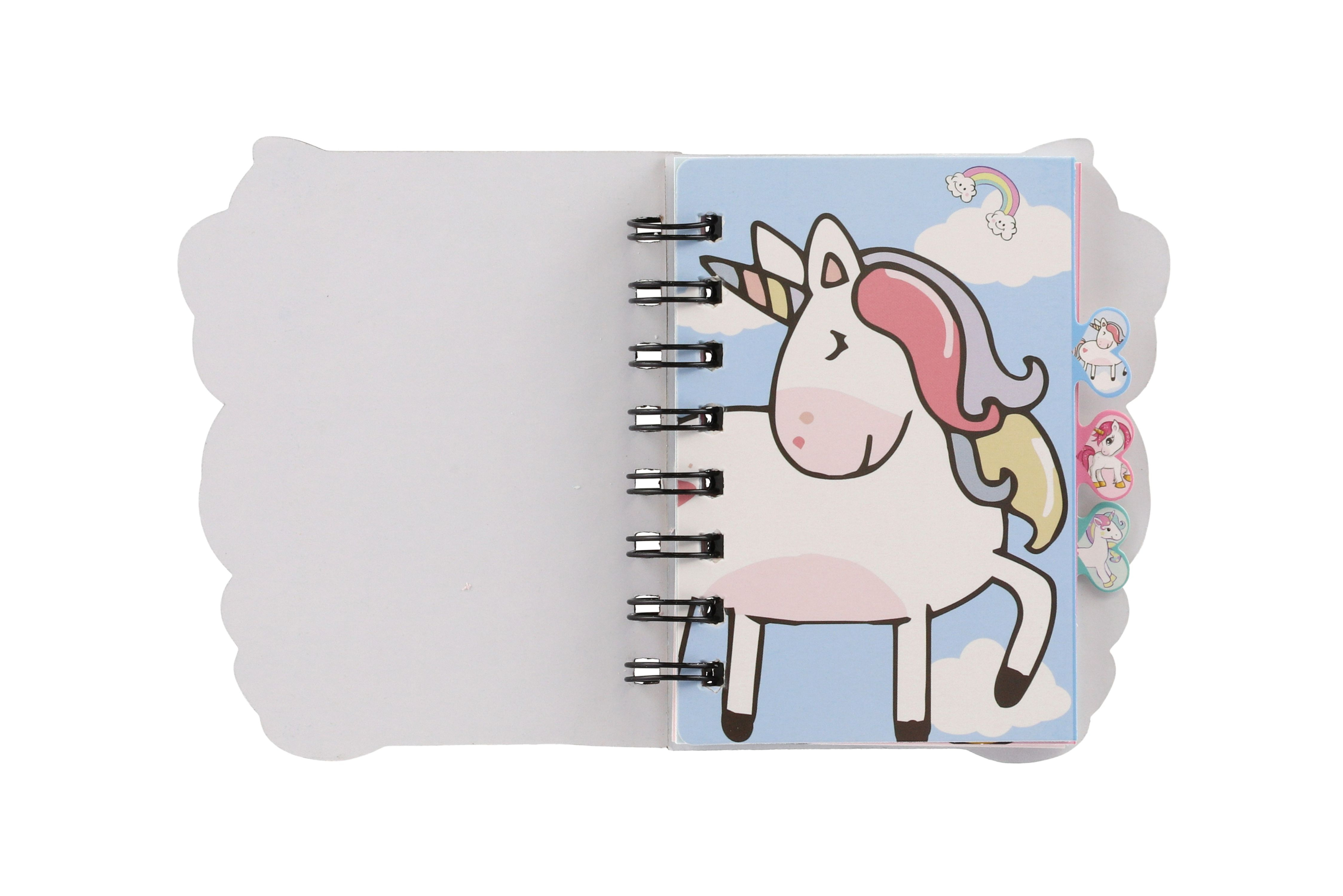 Kroužkový zápisník s motivy jednorožce. Mini trhací sešítek na nejdůležitější poznámky a kresby Vašich nejmenších. Velká výhoda je, že zápisník můžete vzít všude s sebou a nezabere moc místa! Obsahuje cca 60 linkovaných listů. Bez tužky. Rozměr zapisníku: 11 x 12,5 cm. Není hračka.