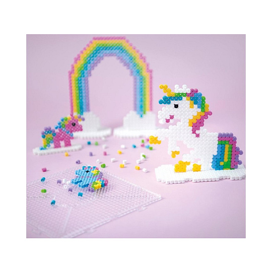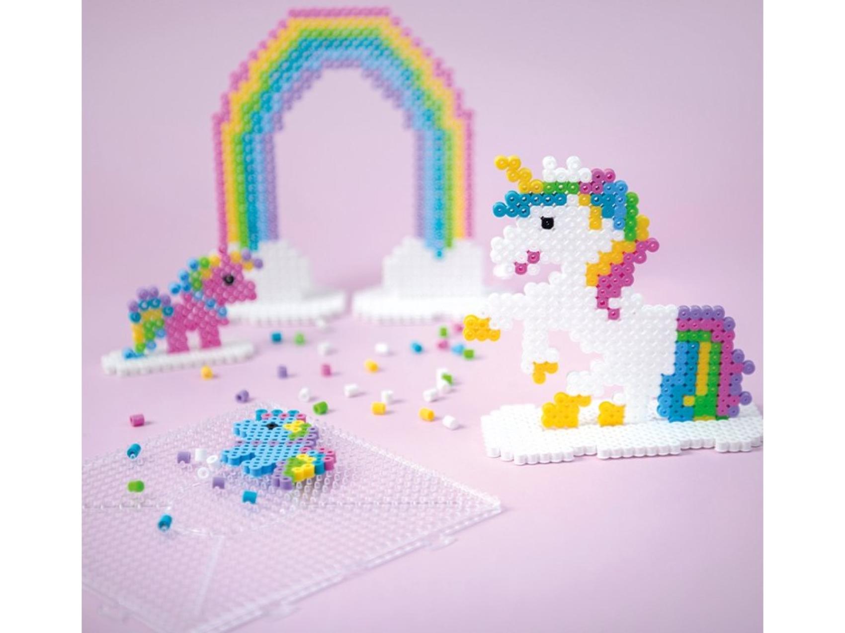 Kreativní sada zažehlovacích korálků s motivem jednorožce potěší všechny malé milovnice tvoření. Z barevných korálků si děti mohou vytvořit kouzelné obrázky jednorožců, duhy a dalších fantazijních motivů. Stačí vyskládat korálky na podložku podle předlohy nebo vlastní fantazie a poté je nechat zažehlit dospělou osobou. Hotové výtvory lze použít jako dekoraci do pokojíčku nebo milý dárek.