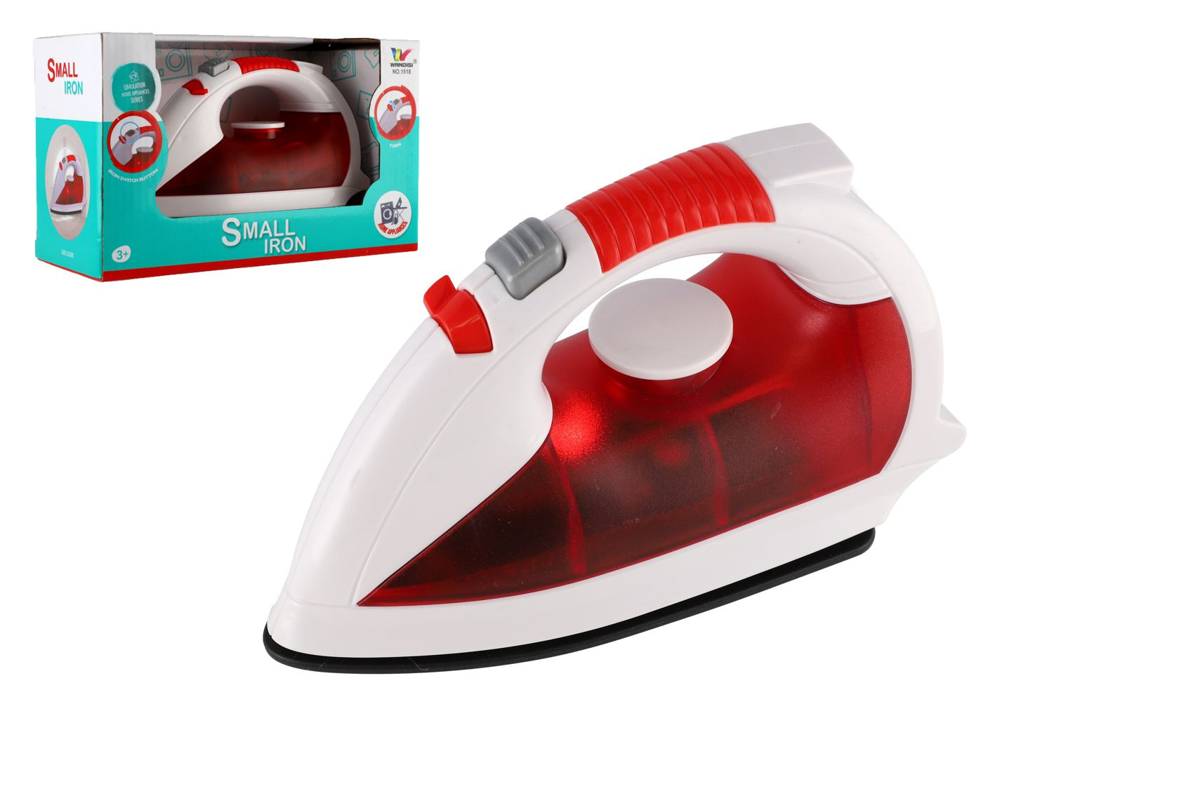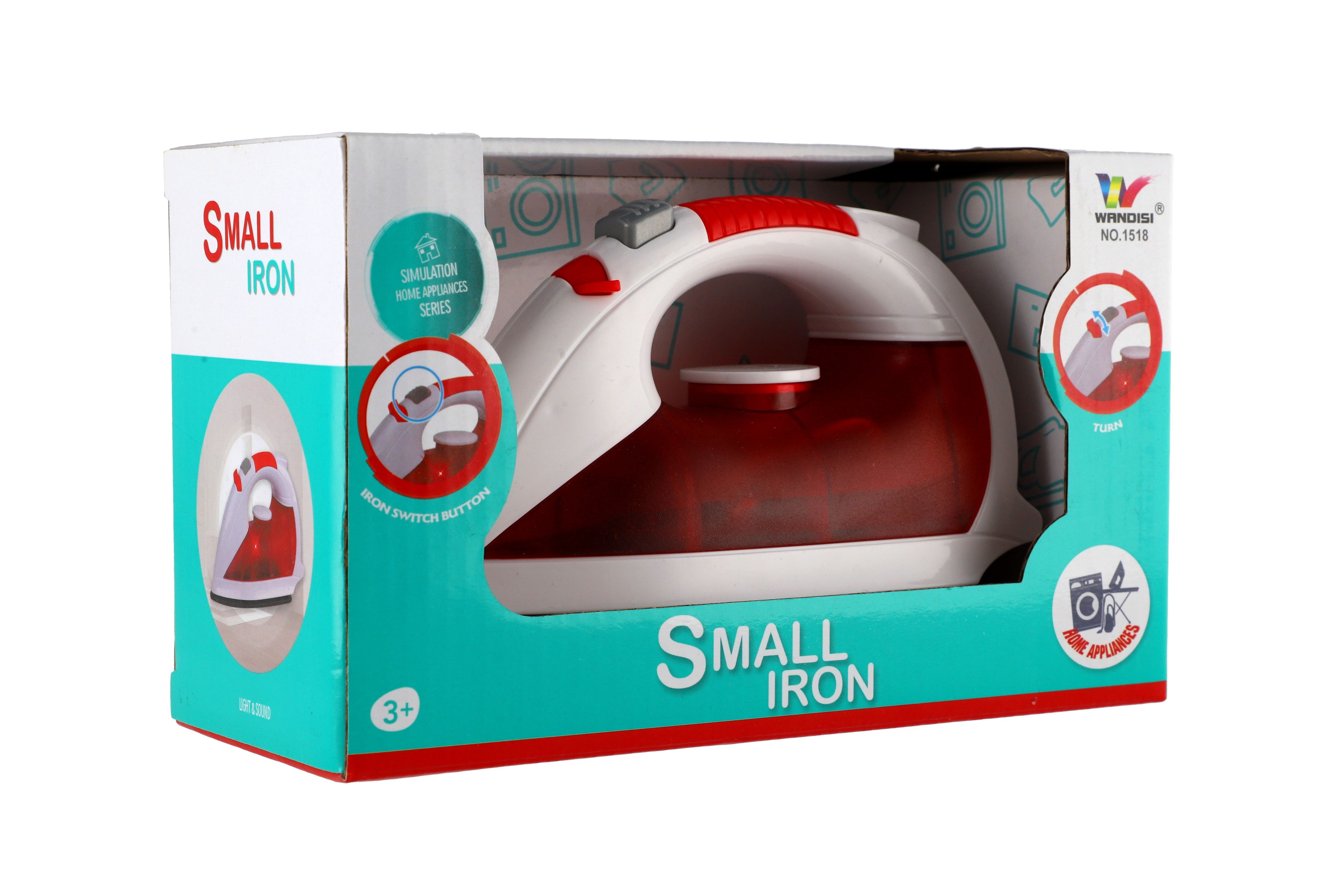 Žehlička plast 17cm na baterie se zvukem se světlem v krabici 21x13x9cm