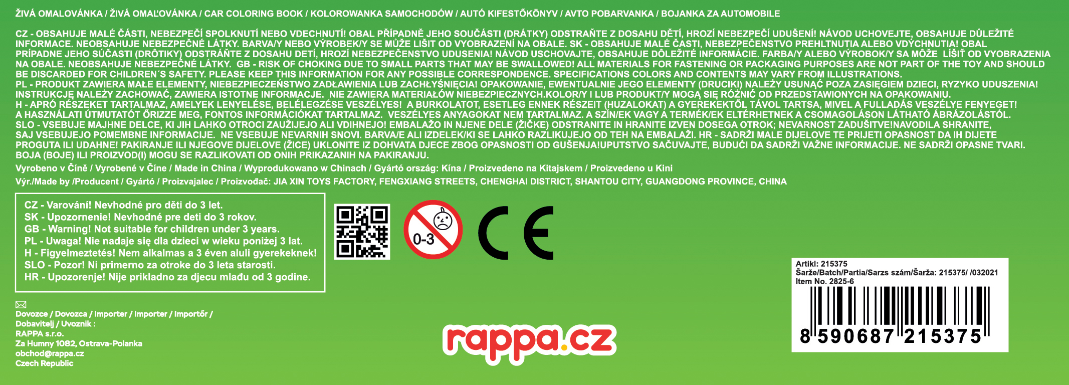 Rappa Živá omalovánka auta 3 ks