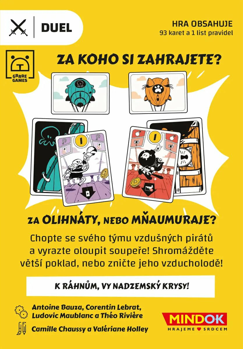 Každý hráč má vlastní sadu karet a tři vzducholodě, pod které buduje sloupce posádky. Ve svém tahu si vybíráte z několika akcí – dobíráte karty, hrajete nové postavy nebo odhazujete karty pro speciální efekty. Efekty zahrnují útoky, manipulace s kartami nebo výběr zlata. Na konci vás může spasit i správně zajistěný host – jen si dejte pozor, ať vám soupeř do sejfu nepronikne.