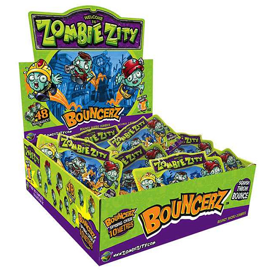 Nová sběratelská kolekce Zombie Zity Bouncerz bude obsahovat 48 gumových skákajících postaviček. Sbírka je obohacena o zcela speciální figurky: zlaté, stříbrné a svítící ve tmě. Díky jedinečným vlastnostem s nimi můžete zažít ještě více legrace a zkusit si zahrát jednu ze zábavných her, ke kterým najdete návod uvnitř balení.