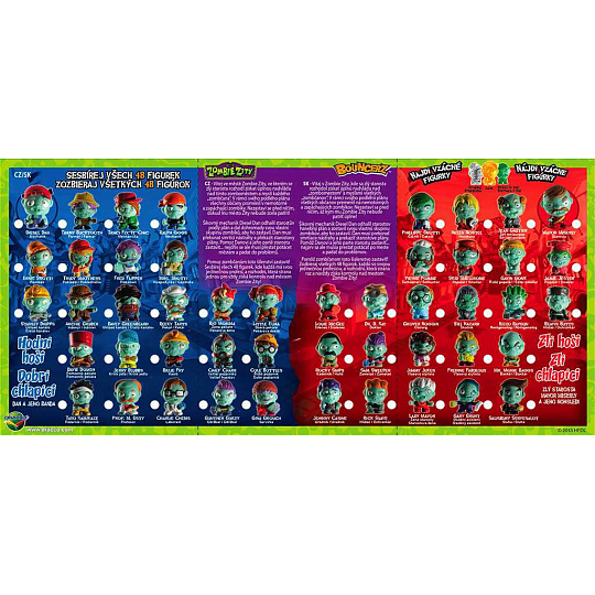 Nová sběratelská kolekce Zombie Zity Bouncerz bude obsahovat 48 gumových skákajících postaviček. Sbírka je obohacena o zcela speciální figurky: zlaté, stříbrné a svítící ve tmě. Díky jedinečným vlastnostem s nimi můžete zažít ještě více legrace a zkusit si zahrát jednu ze zábavných her, ke kterým najdete návod uvnitř balení.