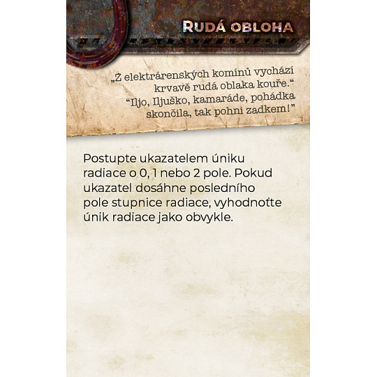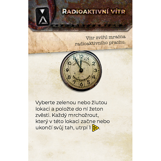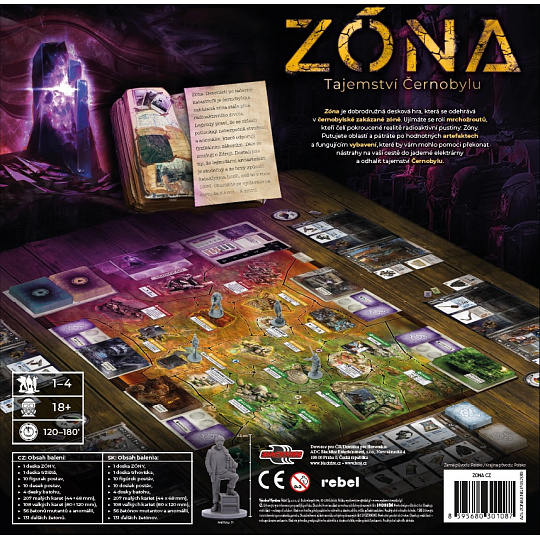 Zóna je dobrodružná desková hra, která se odehrává v černobylské zakázané zóně. Ujímáte se rolí mrchožroutů, kteří čelí pokroucené realitě radioaktivní pustiny: Zóny. Putujete oblastí a pátráte po hodnotných artefaktech a fungujícím vybavení, které by vám mohlo pomoci překonat nástrahy na vaší cestě do jaderné elektrárny a odhalit tajemství Černobylu.
