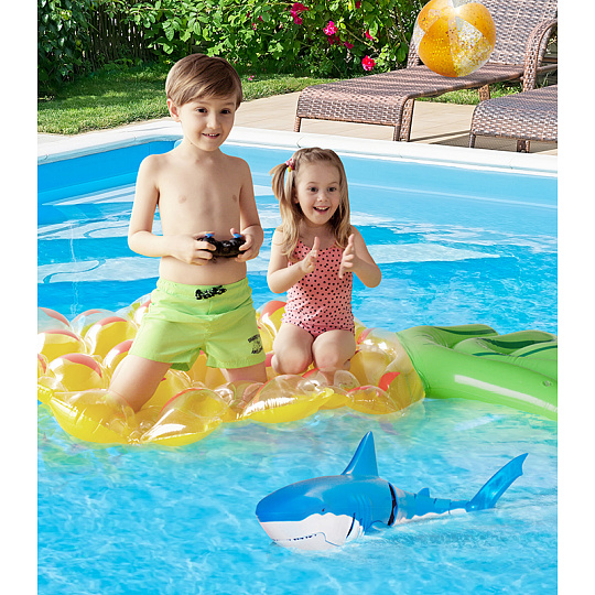 žralok na dálkové ovládání, kterého můžeš vyzkoušet v bazéně, ve vaně, v moři… žralok má při plavání realistické pohyby a vypadá jako živý. Doba nabíjení 3 hodiny, doba jízdy 40 minut.