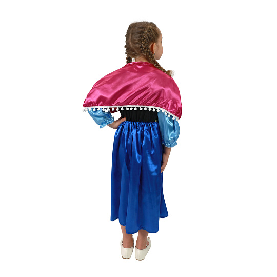 Překrásný dívčí kostým pro malé zimní princezny! Kostým princezny Aničky ve velikosti M je určen pro holčičky ve věkovém rozmezí 6-8 let (117-128 cm). Kostýmek je ušit v černo-modrých barvách, je zdoben zlatým lemováním a součástí je růžový saténový plášť s modrým krystalem. Tento stylový kousek ti nesmí v šatníku chybět! Nejen letos je p