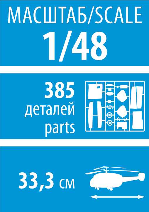 Model vrtulníku ke slepení. Velikost: 1:48; 33,3 cm. Balení obsahuje: 385 dílků ke slepení.