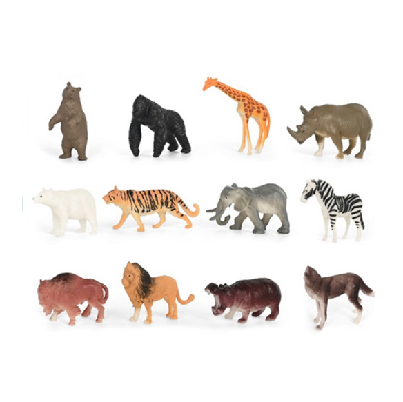 V balení najdete 12 ks různých figurek divokých zvířat, jako jsou slon, opice, tygr a jiné. Velikost zvířátek je cca 5-8 cm, záleží na druhu. Cena je uvedena za 1 ks.