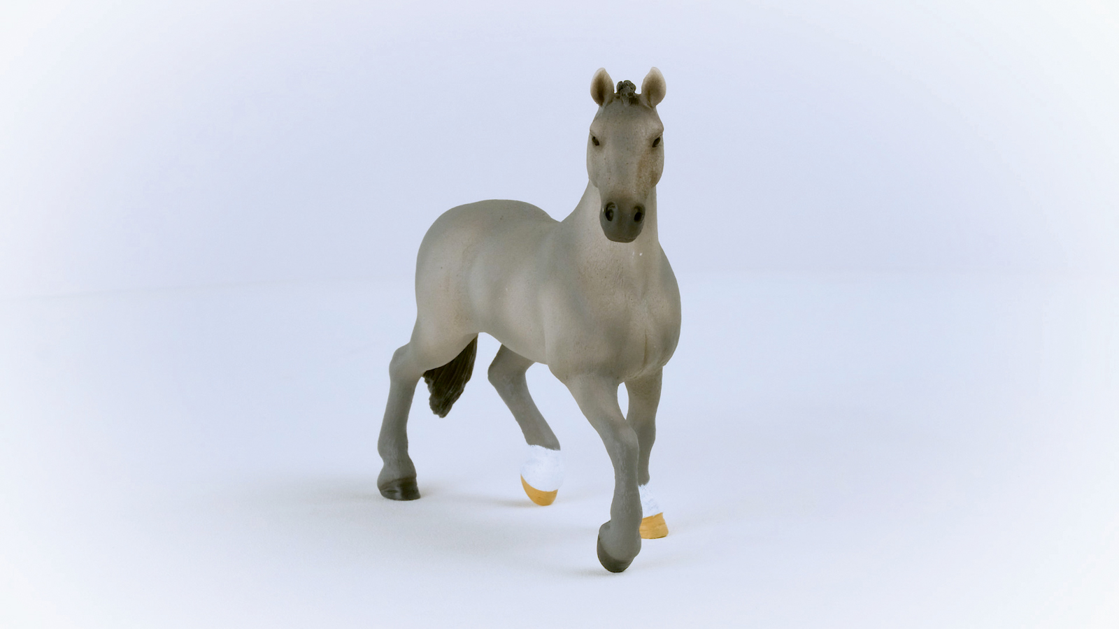 Jen chovní andaluští koně zapsaní v plemenné knize mohou být označováni jako čisté, španělské plemeno (PRE). Pro zápis do chovu se musí kůň registrovat a musí mu být udělena licence. Udělení licence probíhá jako prohlídka, u které se hodnotí druhy chůze a stavba těla. Andaluští koně jsou téměř vždy bělouši. S hnědáky, vraníky, ryzáky a plaváky se u nich člověk setká málokdy. Rozměr figurky: 11,1 x 13,5 x 4,1 cm. Nevhodné pro děti do 3 let. Doporučený věk: 5-12 let.