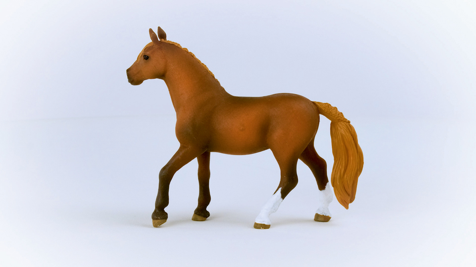 Hřebec Mangalarga Marchador je připraven: Kdo si ho chce vyzvednout z výběhu a vzít ho na projížďku? Rozevře nozdry a v očekávání odfrkne. Je připraven vyrazit na zábavnou projížďku. Jezdci oceňují, že je dobře ovladatelný a není příliš velký. Mangalarga Marchador původně pochází z Brazílie. Jméno Marchador je odvozeno od způsobu jeho chůze, jemné chůze zvané „marcha“. Rozměry balení: 11,3 x 17,5 x 4,3 cm. Věk: 5+