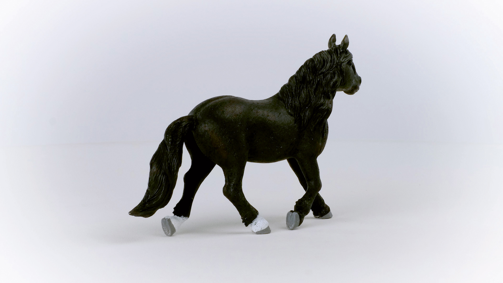 Roztomilé fríské hříbě zvědavě zastříhá ušima a natáhne dlouhý krk. Co objevilo tak zajímavého? Bezpochyby bude klusat po pastvině na svých dlouhých nohách, aby si ji prohlédlo zblízka. Až uhlově černé fríské hříbě vyroste, bude jistě vypadat stejně jako jeho otec, pohledný fríský hřebec (prodává se samostatně). Čeká ho skvělá budoucnost s kariérou na koňských výstavách nebo jako drezurní kůň. Toto staré plemeno koní se pro tento druh práce obzvlášť hodí. Fríští koně jsou také známí jako spolehliví a mírní – ideální přátelé. Velikost: 8,2x8,7x3cm. Věk: 3+