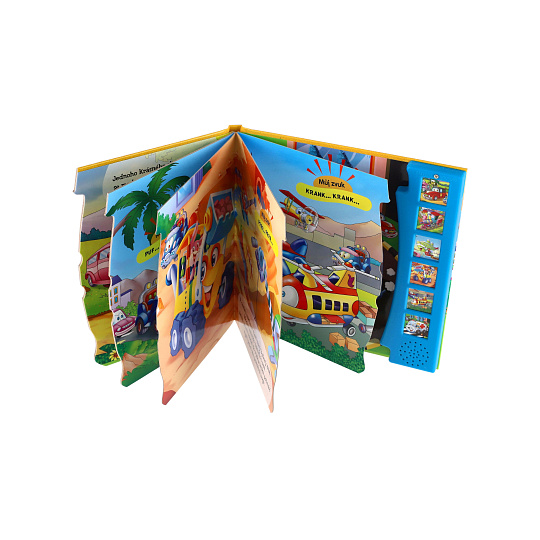 Zmáčkněte, prohlížejte obrázky a poslouchejte! Dětská kniha obsahuje krásné ilustrace, které zaujmou malé milovníky autíček. Stisknou tlačítko a mohou si poslechnout, jak dělají oblíbené dopravní prostředky, např. mašinka, parník, nakladač, sanitka... Rozměr knížky: 19 x 19,5 cm Vhodné pro děti od 3 let